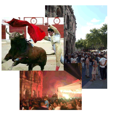 Nīmes is also famous for its Bullfight festival (Feria) which takes place every year on the Pentecostal weekend, where those who follow bullfighting religiously mix with those who take it less seriously and others who simply want to drink and eat at one of the many outdoor restaurants (bodegas).